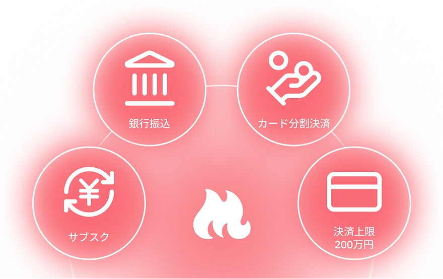 クレジットカード・銀行振込・月額サブスクに対応。分割払いも可能で、購入のハードルを下げます。